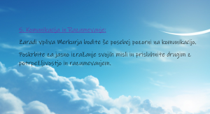 Retrogradni Saturn lahko prinese izzive v zvezi s komunikacijo. Morda se boste morali soočiti s težavami v komunikaciji, kot so nesporazumi, težave pri izražanju ali občutek omejenosti v komunikacijskih sposobnostih. Pomembno je, da se osredotočite na jasnost in natančnost v svojih besedah.